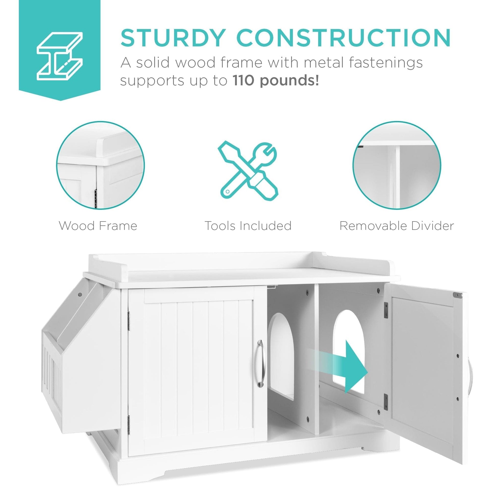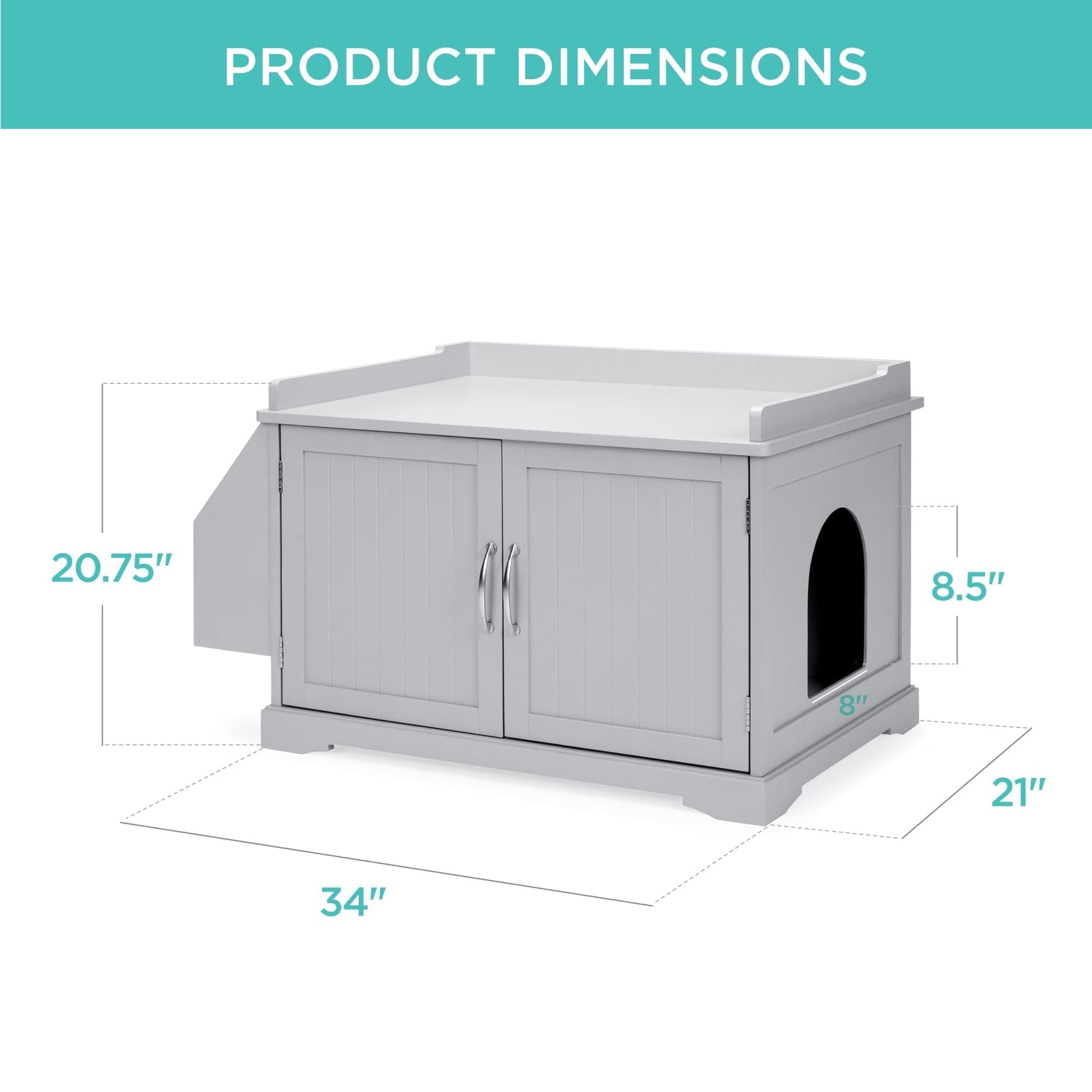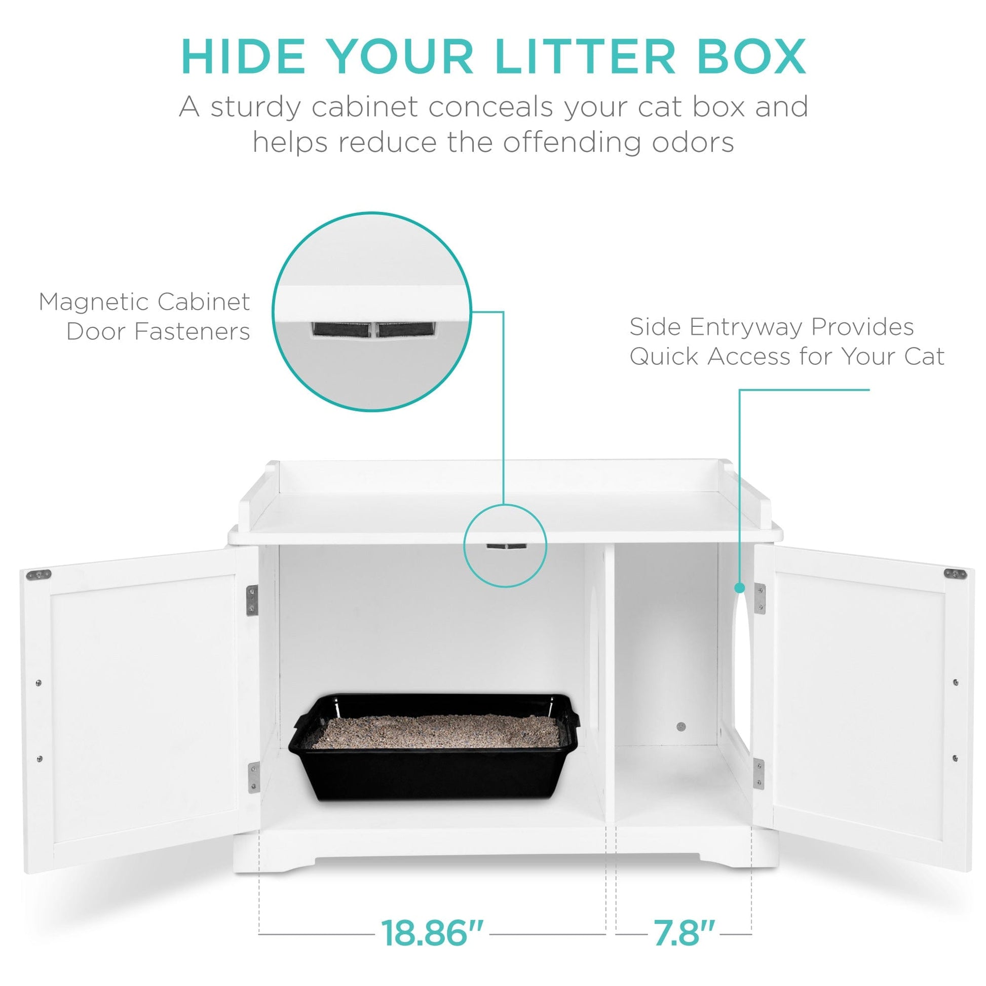 Large Wooden Cat Litter Box Enclosure & Storage Cabinet w/ Magazine Rack